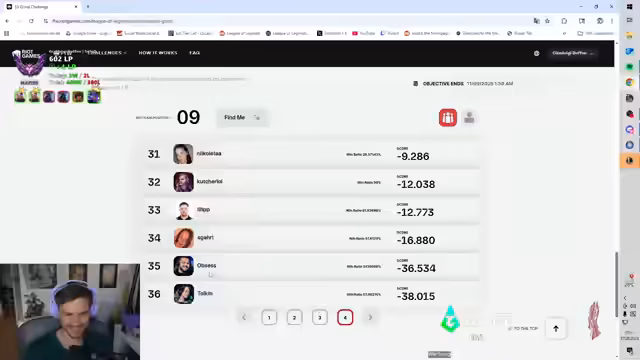 01:35:05Das Gespräch verlagert sich auf die Grind-Challenge, eine Community-Challenge. Es werden Probleme beim Last-Hitting von AD-Carry-Spielern kritisiert und der Vorwurf geäußert, diese seien verwöhnt. Die Teilnehmer der Challenge werden analysiert, wobei auf die Winrate und die erreichten LP geachtet wird. Es werden Spieler mit verdächtig hohen Winrates identifiziert, deren Statistiken jedoch als legitim eingestuft werden. Auch ein Master-Spieler ist Teil der Challenge, was als bemerkenswert angesehen wird.