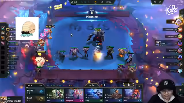 08:52:41Der Streamer taucht tiefer in die Analyse einzelner Champion-Builds ein. Er erklärt die Funktionsweise von Bart, dessen Freischaltung durch spezielle Roll-Strategien erfolgt und der eine Reroll-basierte Wirtschaftsfunktion bietet. Für Sion wird eine Komposition mit Draven und LeBlanc skizziert, die auf Stacks abzielt. Zudem wird der Bruiser-Build mit Sion als Kern behandelt, der durch hohe HP-Werte und statisches Schaden sehr stark im späten Spiel sein kann. Der Fokus liegt auf der optimalen Itemverteilung und Synergienutzung innerhalb dieser Builds.