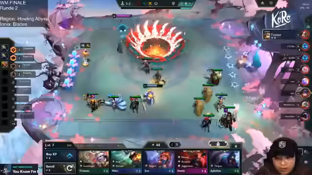 03:30:56Die Aufmerksamkeit richtet sich wieder auf Elia, dessen strategische Entscheidungen im Mittelpunkt stehen. Der Streamer beobachtet, dass Elia sich bisher gescheut hat, die starken V-Roll-Comps zu spielen, die bei ihm sonst am besten funktioniert haben. Stattdessen entscheidet sich Elia für eine Kombination mit Kalista und Edge of Night. Zwar ist Viego in der Anfangsphase stark, aber das Item-Build und die fehlende Kalista 2 machen die Position unsicher. Nach einigen unglücklichen Kämpfen und dem Verlust der Streak ist Elia mit nur 5 Punkten weit abgeschlagen und muss nun aufholen.