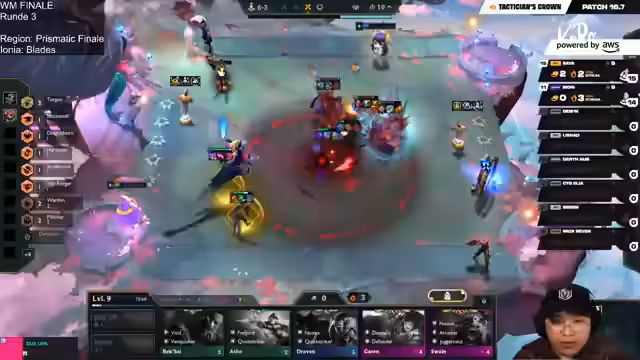 02:18:13Der Gameplan ist nun klar: Galo soll freigeschaltet und Lissandra oder Lux als Item-Träger benutzt werden, um im Optimalfall Rise zu erreichen. Mit einem Economy-Augment und der gesammelten Economy wird ein Level-9-Rush in Erwägung gezogen. Dies wird jedoch durch eine knappe Niederlage in einer neutralen Runde erschwert. Gleichzeitig wird die Starke Stellung von Saya und Li Chao mit ihrer Freyjord-Synergie und hohen Level beobachtet.