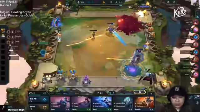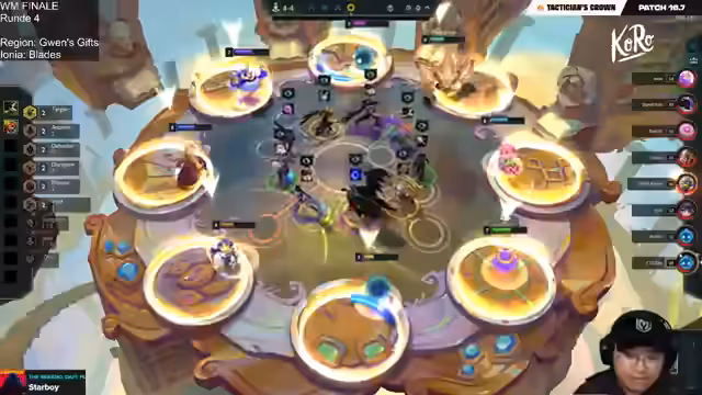 00:21:01Um 13 Uhr beginnt das Finale im Checkmate-Format, das den Weltmeister kürt. Zuerst muss ein Spieler 20 Punkte erreichen, um im 'Check' zu sein, und kann dann mit einem weiteren Sieg den Titel holen. Der Streamer analysiert das Spiel der Teilnehmer im Detail. Elia startet stark und eine effektive Strategie ist das 1-4-10-Gold-Making, um Comp-Builds früh zu starten. Auch die großen Rivalen wie Saja mit 78 Punkten nach 12 Spielen werden beobachtet.