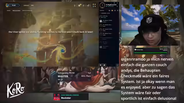 02:52:22Das neue Set 'Space Gods' wird angekündigt, das Karusselle durch Götter ersetzt, die Effekte und Komponenten anbieten. Ein Tweet von MordDoc bestätigt, dass Spieler mit weniger HP im Karussell und mit der neuen Götter-Mechanik einen Vorteil haben. Die aktuelle Lobby ist gemischt mit Physik- und Magic-Damage, was einen flexiblen Spielstil erfordert. Der Streamer entscheidet sich für einen Patient-Opener und spielt Demacia mit der Absicht, später Rize zu erreichen.