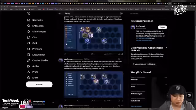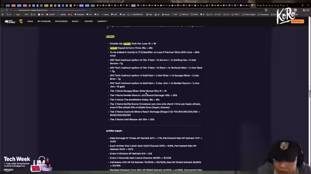 01:55:25Der Stream beginnt mit einer detaillierten Analyse der wichtigsten Meta-Änderungen im neuen Patch. Besonders im Fokus stehen Veränderungen bei Einheiten wie Vex, Anima und Masi Yi. Der Streamer erklärt, wie die Range-Reduzierung von Vex von 8 auf 5 deren Spielweise erheblich beeinflusst und diskutiert die neuen Item-Builds für Anima, die nach den Änderungen nur noch mäßig performen. Für Masi Yi wird die Verbindung zwischen Psyonic-Items und der Sona-Ähnlichkeit erklärt, um Psyonic zu aktivieren. Die Analysen werden mit konkreten Item-Empfehlungen und strategischen Erklärungen untermauert.