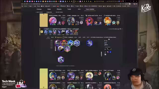 03:00:11Eine weitere dominante Combo im neuen Patch ist die Darkstar-Kombo mit Emblem. Der Streamer erklärt, wie das Emblem es ermöglicht, schnell auf sechs Darkstar zu kommen und warum diese Kombination ohne Legendary-Items funktioniert. Er zeigt die vielfältigen Item-Optionen für verschiedene Carries wie Full-AD Kaiser, Full-AP Karma oder Jhin. Besonders hervorgehoben wird die Stärke dieser Kombination mit Emblem, die oft zu Top-2-Platzierungen führt. Der Streamer diskutiert auch die verschiedenen Spielweisen und möglichen Gegenstrategien.