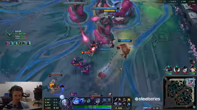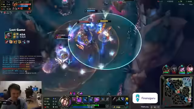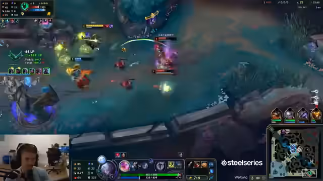 06:45:22Nach einer technischen Unterbrechung des Streams, die den Streamer verärgert, konzentriert sich der Fokus wieder auf das laufende League of Legends-Spiel. Der Streamer analysiert die aktuelle Situation, beschreibt seine Spielweise mit dem Champion Jace und seine strategischen Entscheidungen. Er äußert sich zu Champion-Picks, wie etwa dem gebannten Yuumi und der Wahl von Jace, und diskutiert die Stärken und Schwächen seiner Champions wie den skalierenden Jace und den starken Olaf auf der Gegenseite.