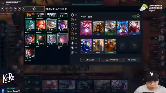 02:55:18Der Streamer bereitet sich auf das bevorstehende Profiligaturnier vor und analysiert die aktuelle Meta. Er diskutiert die Stärken und Schwächen verschiedener Builds wie Jace/Leona oder Ash/Colossal. Er betont die Wichtigkeit von Item-Builds wie Warmog's Armor oder Guardian Angel für bestimmte Einheiten und erwähnt den Einfluss von koreanischen Spielern auf die Metaentwicklung.