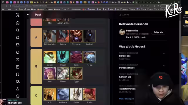 00:06:16Der Stream beginnt mit einer Diskussion über die aktuelle Meta und mögliche Backfixes, die aufgrund von Feiertagen unwahrscheinlich sind. Es wird erwähnt, dass Twisted Fate eine vielversprechende Carry-Option sein könnte, besonders mit Captain's Brew. Ein neues Feature für Singed im Lategame, 'Bronze for Life', wird als sehr stark im Prismatic-Bereich hervorgehoben. Der Streamer teilt mit, dass er für seine Theorie-Recherche die neuesten Posts auf Twitter, Reddit und chinesischen Foren durchforstet. Zudem wird Metatft als Partner vorgestellt, eine Website für Stats, Items, Augments und Teamcomps, die auch eine kostenlose Ingame-App bietet. Der Streamer erklärt, wie man seine persönlichen Tierlists in der App oder auf der Website hinzufügen kann, und kündigt an, diese bis Montag intensiver zu aktualisieren, um die Meta-Entwicklungen des anstehenden TK-Turniers zu berücksichtigen.