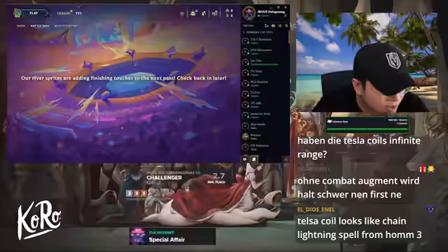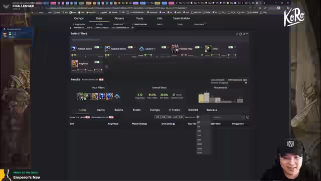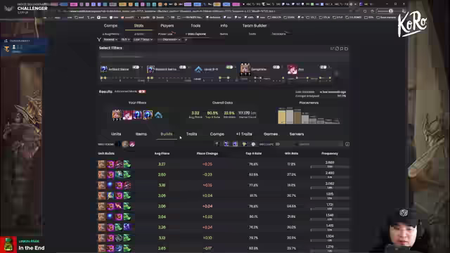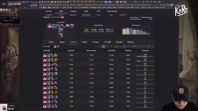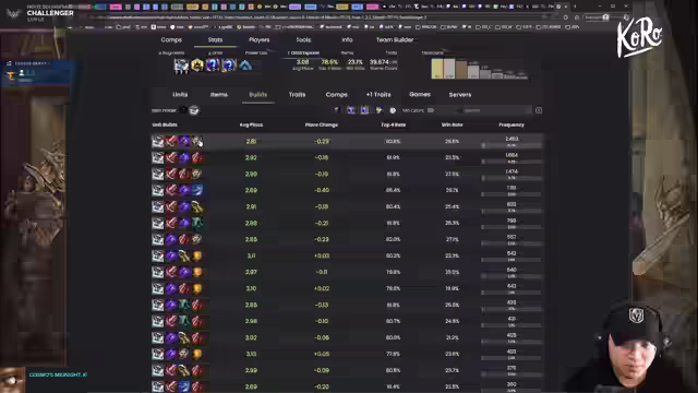 00:46:19Die TFT-WM findet für Amerika und EU in Spanien statt, während APEC und China in China ausgetragen werden. Alle WM-Teilnehmer werden, soweit möglich, von der LAN aus spielen. Heavies für Crown wird als gutes Item für Kog'Maw angesehen, besonders wenn man für Top 4 spielt. Wenn man jedoch für den ersten Platz spielen möchte, wird Portable Forge empfohlen, da es viele gute Artefakt-Items gibt, wie Dawncore, Flickerblade, Lichbane, Static und Gamblers. Notfalls kann man auch Sonjas oder Defile Grass nehmen, ansonsten ein Tank-Item. Es wird überlegt, ob Zuschauer bei der WM zugelassen werden. Auf chinesischen Seiten wird nach neuen Informationen gesucht, aber es gibt nichts allzu Interessantes. Eine chinesische Tierlist wird kurz betrachtet, wobei Jenna und Kobuko hervorgehoben werden. Akali wird ebenfalls als gut angesehen, aber Doppel Nash ist sehr Item-abhängig. Bei der Jenna Combo wird nur ein Bild vorgeschlagen, aber es wurde gesehen, dass man auch Archangel bauen kann. Spark Jarvan wird als besser angesehen, weil Kali auch in die Backland springt. Es wird überlegt, ob man Varus und Braum früh im Spiel spielen soll, und welche Einheiten man später droppen kann. Volibear kann auch gespielt werden, entweder mit Gnar oder Braum.