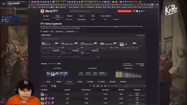 00:07:14Der Streamer analysiert die aktuelle Meta des Patches 15.6 und identifiziert mehrere starke Kompositionen. Kogmar wird als extrem stark eingestuft, da er flexibel gespielt werden kann und ein optimiertes Item-Build aus Best Boy und Jeweled Gauntlet hat. Auch Jinx bleibt relevant, wurde jedoch durch Nerfs etwas geschwächt. Weitere vorteilhafte Komps sind Karma Sorcerer, Jenna Kogma und Akali. Die Entscheidung für eine Kompi hängt von deren Contest-Level und benötigten Items ab; Komps ohne spezielle Legendaries oder Builds sind oft kletikerfreundlicher.