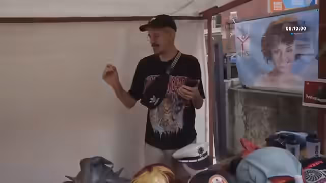 01:24:50Es werden Farbbomben für einen guten Preis angeboten und es werden verschiedene Artikel verkauft, darunter Bayern München Caps, eine Babyflasche, eine Halskette und Schwimmreifen von Paw Patrol. Es wird erwähnt, dass die T-Rex Walkie Talkies bereits ausverkauft sind. Es wird überlegt, den Fußballmanager 2003 zu verkaufen. Es wird Dosenwerfen und Angeln mit Cola-Dosen angeboten, wobei man für den guten Zweck spendet und eine Cola erhält. Ein Mann namens Jerry sucht einen Job und wird im Stream vorgestellt. Es werden DVDs und Blu-rays verkauft, darunter Hotshot 2, Spawn und The Greasy Strangler. Eine Flagge soll verkauft werden und es wird über den Preis diskutiert. Ein Bild von Jerry wird gezeichnet und es wird über Details wie die Größe des Auges und die Halskette gesprochen. Naruto-Handschuhe werden für 60 Euro verkauft und es wird auf die Spendenaktion für das Berliner Tierheim hingewiesen, bei der ab 2.500 Euro ein neues Item freigeschaltet wird.