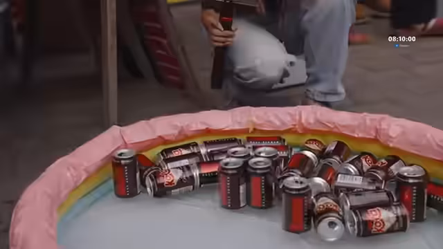 02:39:53Auf dem Flohmarkt gibt es verschiedene Verpflegungsstände und einen Chillbereich. Der Streamer erwähnt eine Auktion, bei der alle 2.500 Euro ein neues Item freigeschaltet wird. Das vierte Item ist der Gummihammer aus dem 'Getting Over It'-Video. Auch ein besonderes Angebot wird gemacht: Für 50 Euro kann man sich mit Farbe bomben lassen. Der Streamer hat dafür ein Fahrrad, ein Kajak und ein Tandem im Angebot. Auch Autogramm- und Fotositzungen werden weiterhin angeboten und der Streamer versucht, bei jedem Stand vorbeizuschauen, um den Zwischenstand abzufragen.