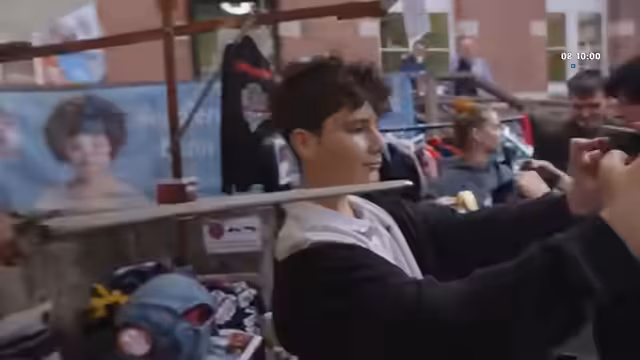 01:25:11Der Stand ist sehr frequentiert und verschiedene Artikel werden verkauft. Dazu gehören Fußball-Kappen, eine Babyflasche, eine Halskette, Schwimmreife von Paw Patrol, Walkie-Talkies in Form eines T-Rex, Fußballmanager 2003, DVDs wie Hotshot 2 und Spawn, sowie einiges an Merchandise. Einige Kunden heben besonders skurrile Einkäufe hervor. Der Streamer betont, dass die Qualität der Ware hoch ist und bittet die Zuschauer, vorbeizukommen, solange noch Artikel verfügbar sind.