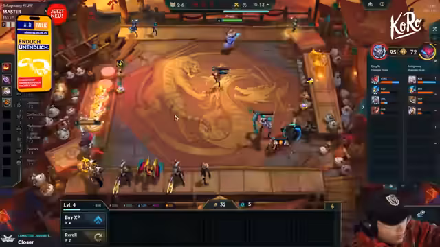 04:19:58Im späteren Spielverlauf gerät der Streamer unter Druck und muss Fehlschläge verarbeiten. Er identifiziert einen kritischen Fehler bei seinem Item-Bau, insbesondere dass er Heal Reduction benötigt und es versäumt hat, Rot Morello auf Aurora zu bauen. Dies führt zu einem hohen AP-Verlust und einem suboptimalen Boardzustand. Der Streamer beschließt, "All-In auf Null zu rollen", um seine Einheiten wie Morde zu retten. Trotz dieses Risikos und potenzieller "Troll-Picks" bleibt er bei seiner strategischen Ausrichtung, muss aber erkennen, dass die Kombination aus Sunfire und Titans nicht die erwartete Stärke liefert und er das Spiel letztendlich nicht gewinnen kann.