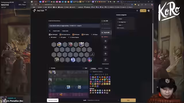 07:44:19Die Entscheidung fällt, sich auf Sire zu konzentrieren. Der Streamer muss tief rollen, da er seine Einheiten nicht halten kann. Ein Duplicator wird genutzt, um Items zu verteilen. Nach mehreren Rollen wird der Goldstand erhöht, doch die Suche nach einer starken Richtung oder einem Carry bleibt schwierig. Ein weiterer Fokus liegt darauf, einen günstigen Kauf zu tätigen, um die Einheiten für das late Game zu optimieren.