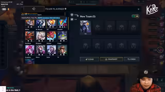 02:10:04Nach einer Rückschau auf das vorherige Spiel wird ein neuer Gameplan für den nächsten Durchgang formuliert. Der Streamer entscheidet sich gegen ein riskantes Forcen und stattdessen für einen soliden Opener, der sich auf das Anima-Squad mit Champions wie Draven und Mordecai konzentriert. Die Strategie besteht darin, direkt zu rollen und mit Djinn eine starke Basis zu schaffen, anstatt zu stark auf das Early-Game zu fokussieren.