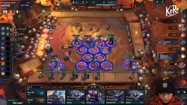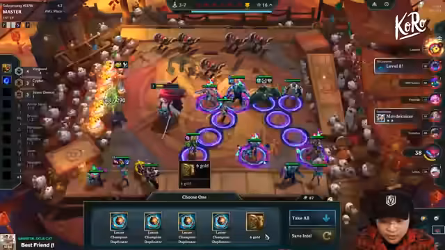 07:37:14Der Streamer befindet sich auf Stufe 4 und muss sich stabilisieren, da er auf Stufe 8 mit einer vollen Bank feststeckt. Die Strategie ist klar, um ein Rollen zu ermöglichen. Ein weiterer Braum wird benötigt, zusammen mit Darius und Vane. Die Itemsuche konzentriert sich auf den Aufbau von Angriffs- und Verteidigungswerten. Es wird das Deep-Rollen angestrebt, um auf Stufe 9 zu pushen und Aurora sowie andere Schlüsseleinheiten zu finden.