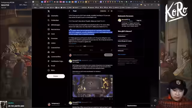 00:11:56Es finden ausführliche Analysen der aktuellen Meta im Spiel Set 14 statt. Besonders starke Synergien und 'Broken'-Einheiten wie 'Aurora' (Dynamo) und 'Viego' werden diskutiert. Spieler wie Sora und N0rb3rtr werden als Beispiele für erfolgreiche 'Anima Squad'- und 'Nitro'-Comps angeführt. Eine neue, starke 'LeBlanc'-Composition mit LeBlanc, Yummi und Ezreal als Carry wird als lernenswertes Highlight vorgestellt.