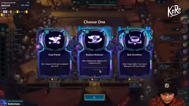 05:17:25Der Streamer analysiert sein letztes Spiel und konzentriert sich auf die verbleibenden Item-Möglichkeiten. Er besitzt eine Reihe von Gegenständen wie BF, Glove, Bow und Belt, hat aber keine einzige Einheit getötet. Die Suche nach der richtigen Kombination ist schwierig; er erwägt Sparks, Glove/Rod/Drill/Gauntlet, Giantslayer oder eine Vanguards/Samira-Kombo. Trotz vieler Gegenstände ist sein Board laut eigener Einschätzung "nicht mehr open" und er rollt weiter, in der Hoffnung, eine zündende Synergie oder eine starke Carry-Einheit zu finden, um das Spiel zu retten.