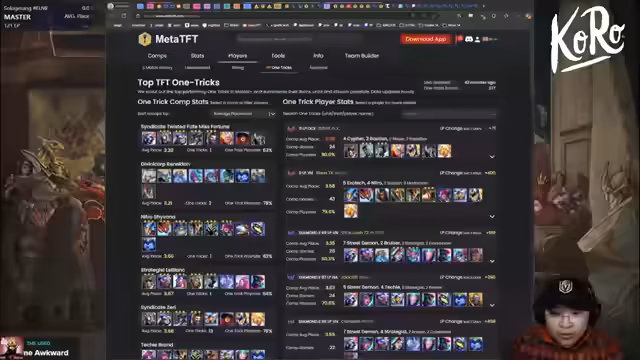 00:34:04Der Streamer stellt neue Tools vor, die für die Meta-Analyse nützlich sind. Eine Web-Seite mit der Fähigkeit, Filter zu speichern, wird entdeckt und als äußerst praktisch für die schnelle Analyse von Comp-Synergien gelobt. Er erklärt, wie solche externen Tracker helfen, Metas wie die mit 'Jinx 2' und 'Rengar' effizienter zu erkennen, ohne den eigenen Account zu gefährden.
