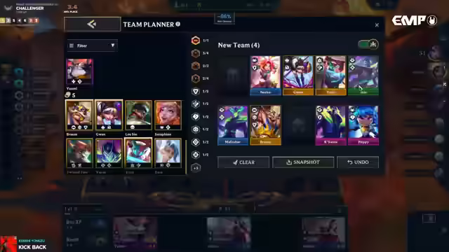 08:25:33Es wird überlegt, ein Heavyweight-Emblem zu verwenden, um das Team zu verstärken. Die Entscheidung, Kaiser anstelle von Gangplank zu spielen, wird in Betracht gezogen. Es wird die Notwendigkeit von Healing Reduction im Spielverlauf festgestellt. Die Bedeutung des Scoutings und die Auswirkungen von Fehleinschätzungen der Gegner werden thematisiert, wobei ein besonderes Augenmerk auf einen Gegner mit hohen Stacks und starker Defensive gelegt wird. Es wird die Entscheidung getroffen, ein Prowler's Claw zu entfernen, da es als unvorteilhaft angesehen wird. Die Wahl zwischen Shadow Clone und Ramping Rage für die aktuelle Team-Komposition wird diskutiert, wobei Ramping Rage aufgrund des zusätzlichen Attack Speed bevorzugt wird. Es wird die Notwendigkeit betont, Xanta 2 zu erreichen, um die Team-Komposition zu optimieren. Die Vorbereitung auf das Turnier in acht Tagen wird erwähnt, wobei die aktuelle Strategie mit Xanta 1 All Out und Heavyweight in Frage gestellt wird.
