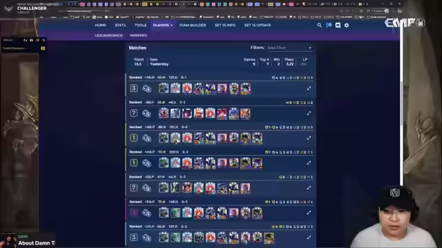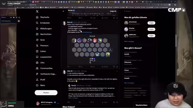 00:09:06Der Stream beginnt mit der Feststellung, dass der neue Patch 15.5 wahrscheinlich kommt. Es wird hervorgehoben, dass es nicht nur Buffs für Star Guardian gab, sondern auch einen Bug bei Jinx gibt, der ihre vierte Rakete mit größerer Reichweite oder größerem AOE ausstattet, was sie noch stärker macht. Es wird diskutiert, dass Star Guardian bereits eine starke Kombo war, die man forcen konnte, und der Jinx-Bug sie noch weiter verstärkt. Es wird kurz auf die unterschiedlichen Statistiken auf verschiedenen Taktik-Tool-Seiten eingegangen und die Vermutung geäußert, dass dies an unterschiedlichen Filtereinstellungen liegt. Abschließend wird erwähnt, dass Jinx in der Ecke meist besser positioniert ist, es sei denn, die Gegner haben Bait-Units oder Zyra vorne, was zu verlorenen Kämpfen führen kann. Es wird auch kurz auf Tipps für Stargazer eingegangen und die Ersetzung von Aria durch Xante ohne Seraphine auf Level 8 angesprochen sowie die Möglichkeit, Syndra durch Sniper zu ersetzen, was jedoch nicht unbedingt notwendig ist, da die meisten Spieler Fulltanks spielen, außer durch Varus.