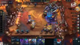 08:58:15Gegen Ende des Abschnitts gelingt es dem Streamer, eine deutliche Dominanz aufzubauen. Er nutzt das 'Spirit Link'-Item, das ihm erlaubt, Einheiten mit nur 1 HP am Leben zu erhalten, was einen entscheidenden Vorteil in einem langen Kampf bringt. Ein 'Duplicator'-Augment ermöglicht es ihm, eine riesige Menge an Gold durch das Verkaufen und Ersetzen von Items zu generieren. Durch diesen strategischen Roll und das Fokussieren auf einen starken Frontline-Carry mit Schutz-Items wie 'Redemption' und 'Belt' kann er einen überwältigenden Sieg erringen und den bis dahin stärksten Gegner besiegen.