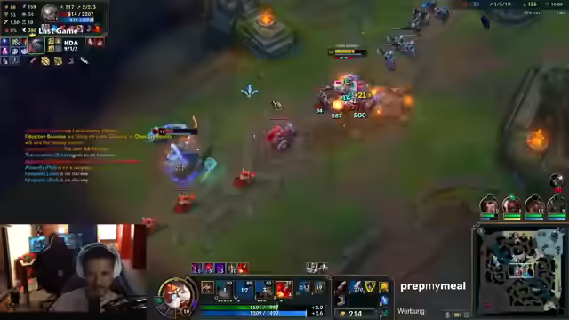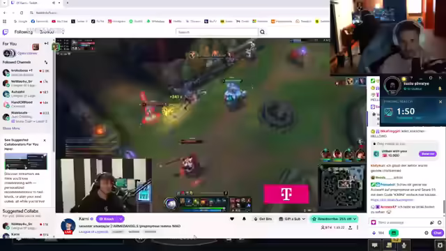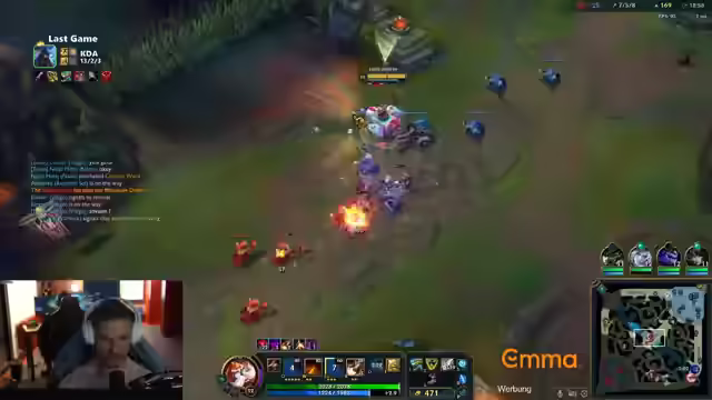 01:35:52Der Streamer erwähnt eine mögliche zukünftige Beteiligung bei Red Bulli, kann dies aber noch nicht garantieren. Auf Wunsch der Zuschauer wird der Dark Mode aktiviert. Der Streamer lobt die Fähigkeiten eines Mitspielers und schaut nach, ob es möglich ist, auf Twitch zu ulten. Es wird über die Enge des Raumes eines anderen Streamers im Vergleich zum eigenen geräumigen Studio gesprochen. Der Streamer erklärt, dass man alles nutzen sollte, um Spaß zu haben. Es wird überlegt, wie man Rückkopplungen über ein Mikro vermeiden kann. Die Zuschauer werden gefragt, ob sie lieber Fullscreen schauen möchten. Der Streamer stellt fest, dass die Musik eines anderen Streamers nicht laut genug ist und dass man für falsche Entscheidungen bestraft wird. Es wird über den Verlust von Türmen und die defensive Spielweise eines Spielers diskutiert. Der Streamer merkt an, dass alle Türme verloren wurden und dass die Sponsoren in den Stream eingebunden werden müssen, da diese die Reise erst ermöglichen. Die Spiele machen den Streamer nervös. Ein Kick im Spiel wird als Hate Crime bezeichnet. Zuschauer werden auf die Twitch-Kanäle von Bukani und Bröki verwiesen, um deren Perspektiven zu sehen. Der Streamer bedauert, dass ein Riot-Account verwendet wird und nicht ein normaler 30er-Account, um zu sehen, wie hoch sie es schaffen können. Es wird über die Möglichkeit diskutiert, dass sie mit einem normalen Account in Silber feststecken würden.
