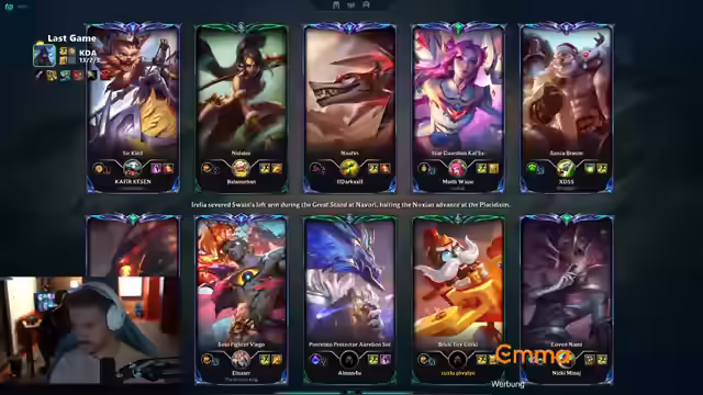 01:08:06Nach der Niederlage im ersten Spiel analysiert das Team die Gründe für die Niederlage und stellt fest, dass es schlecht gespielt hat. Es wird vermutet, dass der Lucian im gegnerischen Team ein Smurf war. Es wird beschlossen, im nächsten Spiel einen AP- und einen AD-Champion zu picken, um eine bessere Balance zu haben. Der Streamer kündigt an, dass dies das einzige Spiel sein wird, das sie bis Master verlieren werden. Es wird überlegt, was als Signalwort verwendet werden soll, um sich im Spiel zu erkennen, falls man gegeneinander spielt. Es wird festgestellt, dass es in der Türkei viele streunende Katzen gibt, um die sich jedoch gekümmert wird. Der Streamer kündigt an, im nächsten Spiel Barth zu spielen und vier Damage-Items zu kaufen. Es wird festgestellt, dass die Gegner Draven und Yumi haben, was eine Herausforderung darstellt.