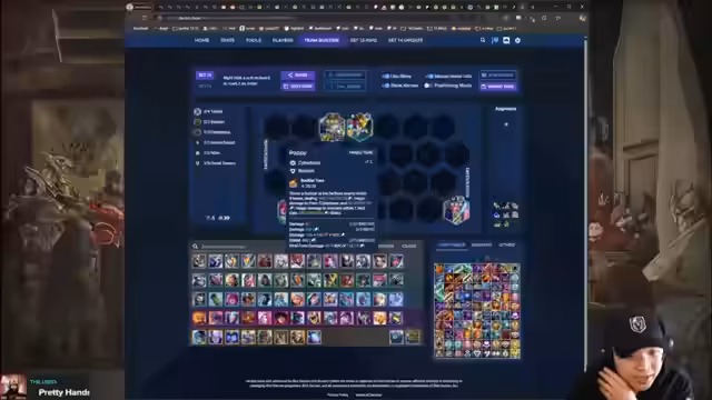 01:37:24Der Streamer erwähnt, dass er 6,5 Stunden Recherche betrieben hat, um verschiedene Aufstellungen und Strategien für das Spiel zu analysieren. Er betont die Wichtigkeit von Item-Economy und die Notwendigkeit, priorisierte Items für Haupt-Carry und Haupt-Tank zu entwickeln. Die Diskussion umfasst auch die Bewertung von Emblems wie Bruiser Emblem, das zusätzliche Stats bei Trägern mit Max-HP bietet, und die Bedeutung strategischer Platzierung der Einheiten im Spiel.