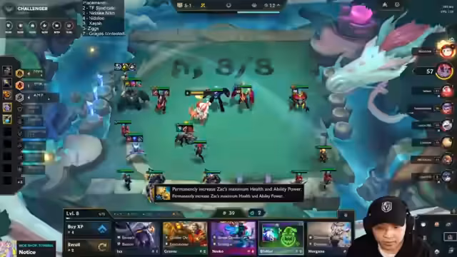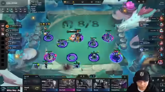 07:49:56Der Streamer beschäftigt sich mit der Levelstrategie, insbesondere mit dem Ziel Level 10 zu erreichen, sowie mit der Herausforderung, passende Items und Einheiten zu finden. Er erwähnt den Verkauf von Einheiten wie Alistar, um Platz zu schaffen, und die Notwendigkeit, in bestimmten Situationen Items zu swappen. Dabei wird auch die Bedeutung von Item-Kombinationen wie Morello und Warmox für bestimmte Einheiten wie Sejuani erklärt.