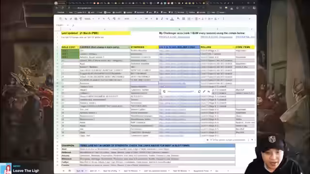 05:48:45Der Streamer plant, bis zum 24. März hauptsächlich Scrims mit anderen Challenger-Spielern zu machen. Ab dem 24. März wird er dann Project PB, eine PBE-Liga, bestreiten, an der viele Challenger-Spieler aus der ganzen Welt teilnehmen werden. Diese Liga wird voraussichtlich im April starten und für die Streamer eine intensive Trainingsphase darstellen. Er erwähnt auch, wie viel Zeit er in die Recherche für Set 14 investiert hat, mit 5 Stunden während des Streams und zusätzlicher Zeit davor.
