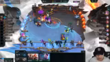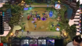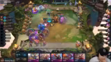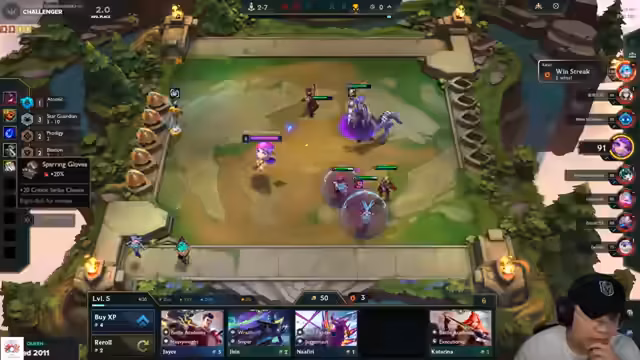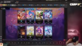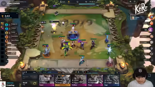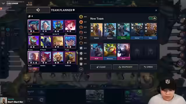 01:51:28Im Mittelteil des Streams gerät die Komp in Schwierigkeiten, da der Cutter hart umkämpft ist. Der Streamer überlegt, ob er den Cutter mit einem Too-Much-Value-Spieler oder den Kaiserspieler contesten soll. Ein Plan mit Darius, Carly und Kobuko 3 wird verworfen. Stattdessen wird die Komp umformuliert in eine 4-Mentor-Comp mit Jenna, Rakan und zwei Cuttern, um die laufende Runde zu stabilisieren und wirtschaftlich durchzustehen.