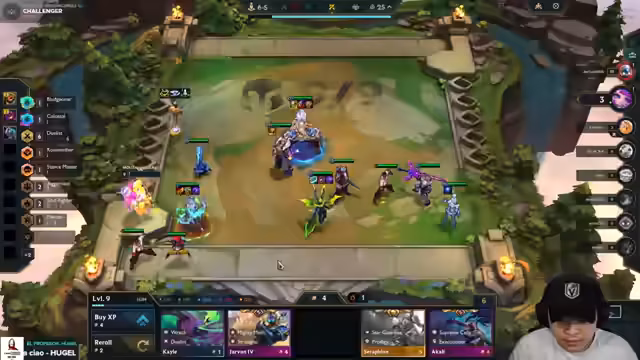 01:37:33In einem laufenden Spiel wird die Meta-Dominanz von Champions wie Kayle und Juggernaut analysiert. Die Spieler konzentrieren sich alle auf Seraphine, doch Kayle mit drei Items kann das Spiel gewinnen. Die 6-Duellisten-Kombo mit Udyr und Kayle wird als stark beschrieben, solange perfekte Items wie Edge of Night und Rageblade vorhanden sind. Die Meta scheint stark um Kayle und Juggernaut herum zu drehen.