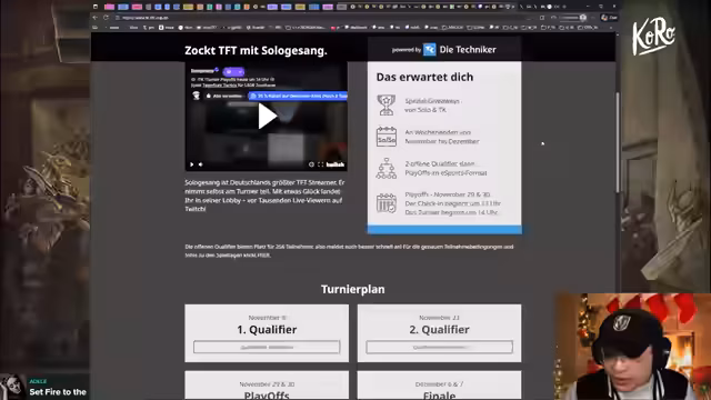 00:38:34Der TK Cup findet als eines der ersten großen Turniere direkt nach dem Release des neuen Sets statt und startet am heutigen Samstag. Alle qualifizierten Spieler kämpfen um einen der Top 64 Plätze, wobei die Hälfte der Teilnehmer am Sonntag weiter für die Top 32 qualifiziert. Das Preisgeld beläuft sich auf insgesamt 6.000 Euro, wobei der Gewinner zusätzlich eine TFT-Tarot-Karten-Sammlung aus dem Magic Mayhem-Set erhält. Anonyme Spiele sind derzeit über Project PB nicht mehr möglich, daher konzentriert man sich auf interne Scrims und Turnier-Vorbereitungen.