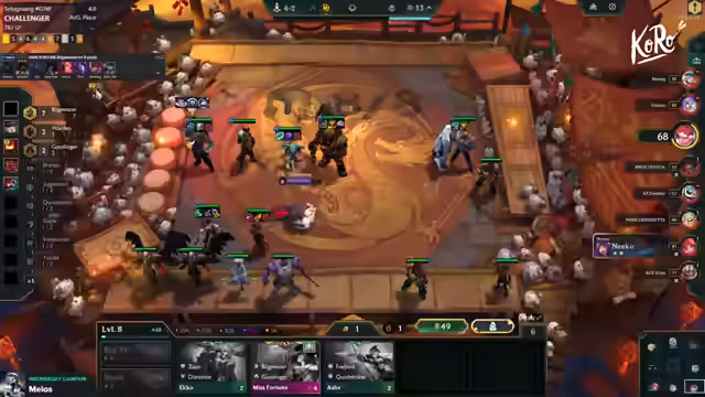 01:16:54Der Streamer diskutiert verschiedene Team-Kompositionen während des Matches, darunter Ionia, Freljord und Fiddle-Einsatz. Er erwähnt die Wichtigkeit von Tank-Items und Frontline-Stabilität, insbesondere mit Wukong und Yunara. Probleme wie Contest um Champions werden angesprochen, sowie die Entscheidung, auf Level 9 zu pushen. Außerdem wird der Einsatz von Emblemen wie Ione Emblem auf Kindred analysiert. Der Fokus liegt auf Upgrades und optimierter Item-Verteilung, um das Spiel zu gewinnen.