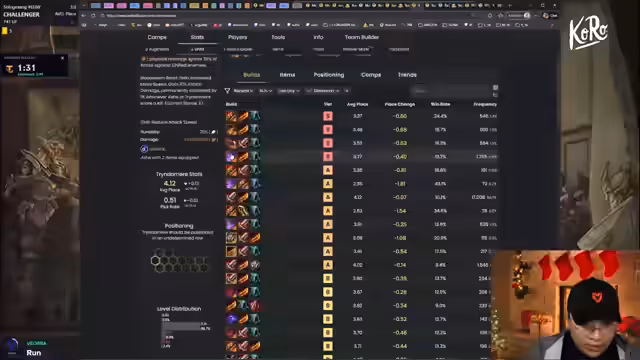 02:49:28Der Spieler analysiert die Effektivität von Steakshifter für Kaiser und entscheidet sich stattdessen für Hullcrush als Tank-Item für Bel'Veth. Er erwägt eine spätere ausführliche Artefakt-Recherche für Top-10-Kompositionen, die einen ganzen Streamtag benötigen würde. Aktuell fokussiert er sich auf 6 Void mit Items wie Kraken Slayer und Infinity Edge, während er Yunara für Jhin optimiert. Diskussionen zu möglichen Swain- oder Ionia-Einheiten sowie der Druck, Ashe trotz Contest zu finden, prägen die Midgame-Entscheidungen.