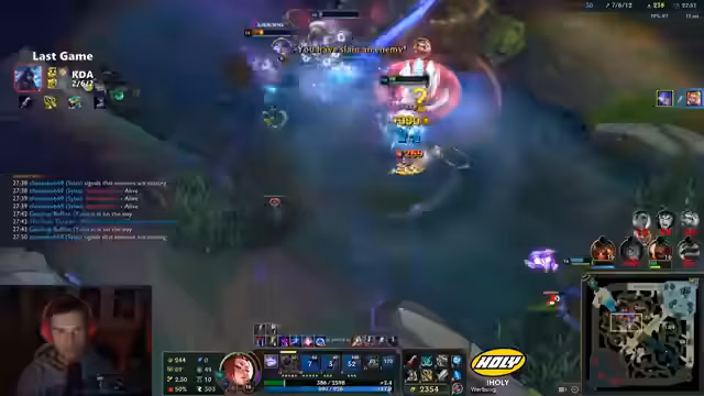 02:52:56Im weiteren Verlauf streamt der Streamer als AD-Carry und kämpft mit grundlegenden Problemen der Rolle. Er wird permanent vom gegnerischen Jungler gankt und ist auf eine passive, defensiv Spielweise reduziert. Jeder Versuch, aktiv zu werden, endet in einem sofortigen Tod, was ihn frustriert. Er kommt zu dem Schluss, dass seine Leistung direkt mit seinem Anspruch, das Spiel zu 'spielen', zusammenhängt. Je mehr er versuchte, etwas zu bewirken, desto schneller starb er. Yonara, den er spielt, erfordert laut ihm viel Damage, den er in diesen Situationen nicht liefern kann, was die Rolle 'unplayable' erscheinen lässt.