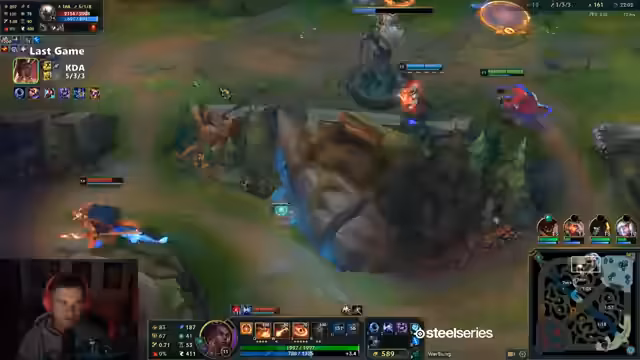 01:44:12Die musikalische Untermalung wird während des Spiels kritisiert, da Deep House als 'tot gehört' empfunden wird. Es wird eine entspanntere Musikrichtung bevorzugt. Im Spiel wird die Bedeutung von 'First Blood' diskutiert, wobei die These aufgestellt wird, dass ein früher Vorteil die Gewinnchance um mindestens 5% erhöht. Die Enttäuschung über ein 'First Blood' des Gegners wird als psychologischer Faktor hervorgehoben. Eine unglückliche Entscheidung, einen Bot-Side-Crab mit ungeeigneten Champions zu contesten, führt zum Verlust des anfänglichen Vorteils. Die Unfähigkeit, den Schaden von Mill einzuschätzen und die geringe Manaregeneration werden als Probleme identifiziert. Trotz eines frühen Goldvorteils durch Runen und Triple Tonic, der den Kauf einer nachfüllbaren Potion ermöglicht, wird die Schwierigkeit, als Mage gegen Auto-Attack-Champions wie Draven zu bestehen, thematisiert. Der fehlende Burst-Schaden und die Notwendigkeit, Skillshots zu treffen, werden als Nachteil gegenüber dem einfachen Rechtsklick-Schaden des Gegners empfunden.
