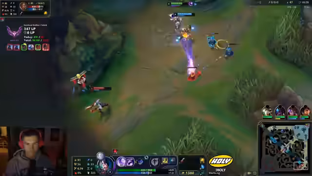 01:24:10Der Streamer empfindet den Schaden von Mage-Champions als 'quatschig' und 'komisch', vermutet aber, dass sie im Late Game gut skalieren. Er muss sich stark konzentrieren, da er als Mage oft das einzige Ziel für den Gegner ist und sein Team wenig Schutz gegen aggressive Champions wie Rammus bieten kann. Die Unspielbarkeit gegen Rammus wird besonders hervorgehoben, da dieser ihn immer anulten und töten kann, ohne dass er etwas dagegen tun kann. Trotz dieser Schwierigkeiten plant der Streamer einen erneuten Challenger-Run in diesem Jahr. Er kalkuliert, dass er bei einer Winrate von 60% etwa 200 Spiele benötigen würde, um die notwendigen 800 LP für Challenger zu erreichen. Dies würde etwa drei Wochen intensiven Spielens erfordern. Er ist sich bewusst, dass dies eine große Herausforderung ist, insbesondere am Ende der Saison, wo die Konkurrenz sehr stark ist. Diese Passage zeigt seinen Ehrgeiz und seine analytische Herangehensweise an das Spiel, trotz der Frustrationen, die er mit bestimmten Champion-Picks erlebt.