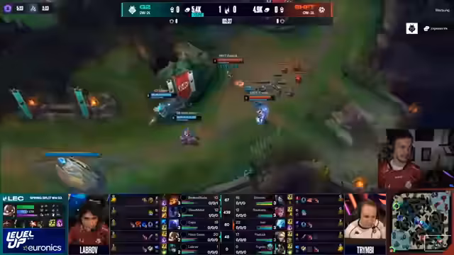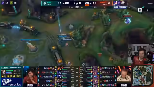 06:37:15Im Jungle Fight von G2 wurde ein Instant-Pause beobachtet. Die Spieler wurden im Vergleich zu Raufasertapete als eher persönlichkeitsarm beschrieben. Der Kommentator hob den brachialen CS-Lead der G2-Bordlane hervor und bezeichnete die Dinger als eklig zu spielen. Das Spiel verlief erwartet, mit J's Toplane CS und Nara's leichtem Vorteil in der Botlane mit 1-2 Kills über Pantheon. G2 führte 2-0, und Bokada war weit hinterher.