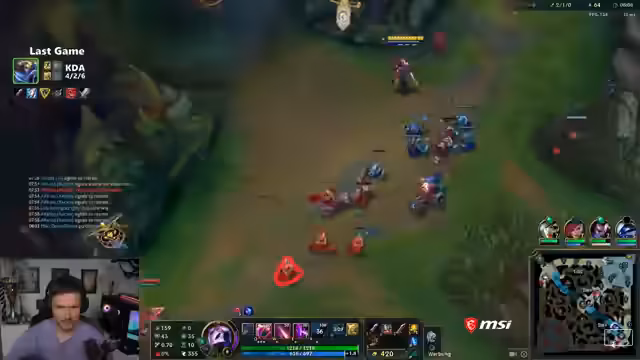 04:06:48Der Streamer analysiert die Map-Kontrolle, insbesondere im Top-Lane-Bereich, wo Fiddlesticks auf Beutezug ist. Er erwägt, den Drachen zu kontrollieren und äußert Bedenken bezüglich des potentialschen Fehlverhaltens von Fiddlesticks. Er diskutiert die Positionierung der Champions und versucht, die Wellen zu pushen, während er gleichzeitig die Bewegungen des Talon und die Möglichkeit eines zukünftigen Engagements in Betracht zieht.