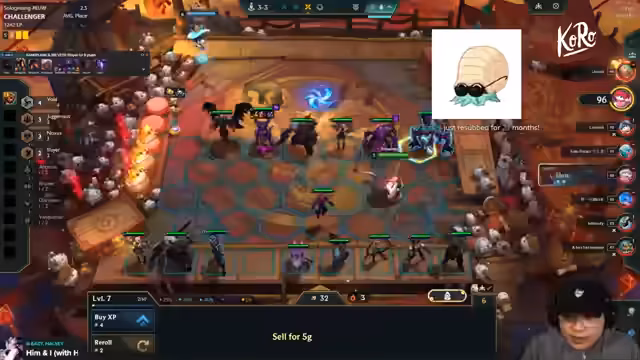 02:40:21Der Streamer entscheidet, zu einem Kaiser-Build zu pivoten. Er will in Stage 3-7 Kaiser freischalten. Er tauscht mit Kogma, da er ihn nicht verwenden kann. Er hat 2 Econ gewonnen und versucht, zu gewinnen und zu behalten. Er hat 6 Einheiten, darunter Niko, die tankt. Er spielt mit Rek'Sai und bekommt viele Stats. Er erklärt, dass Rexha stark im frühen und mittleren Spiel ist, aber nicht mehr, wenn sie nicht mehr die gegnerischen Backliner One-Shoten kann. Er sagt, dass er Kaiser freischalten will, um zu gewinnen.