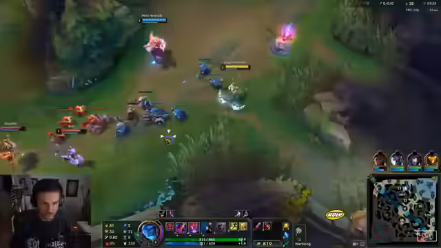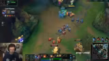 00:12:38Ein früher Teamfight in der Bot-Lane endet mit großen Verlusten für das Team. Der Streamer analysiert den Dive als fehlerhaft und gibt an, dass er keine Ahnung habe, wie sich Fiddlesticks in einem solchen Duell verhält. Er äußert seine Verwirrung über die Stärke des Gegner-Teams und denkt, dass die Poppy im Draft nutzlos erscheint, wenn man nicht proaktiv agiert und den Gegnern den Vorteil nimmt.