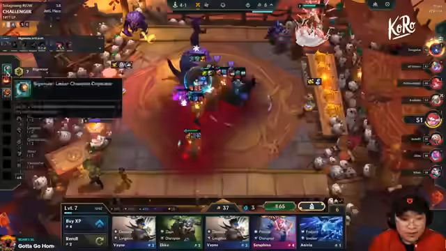 01:44:12Im Late-Spiel wird die Win Condition klar definiert: der Aufbau eines komplett kontrollierten Kaisers mit Rift Herald und optimalen Items. Der Streamer priorisiert das Halten der Streak, um Level 8 oder 9 zu erreichen, und rollt aggressiv nach den fehlenden Einheiten. Letztendlich wird das Spiel durch die Konzentration auf die eigene starke Frontline und das Ausspielen derItemCount-Vorteile gewonnen.