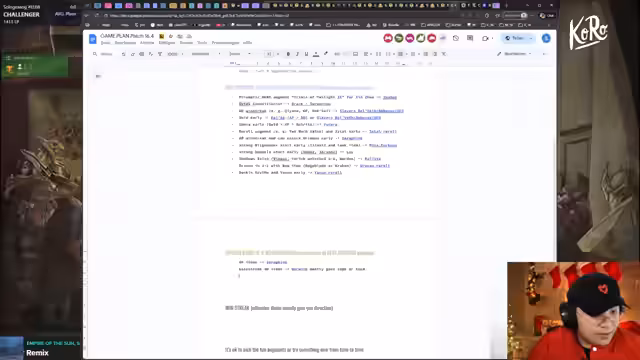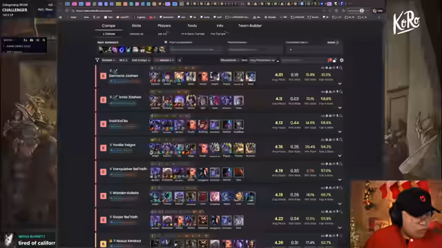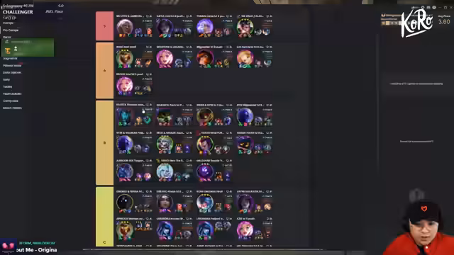 00:03:20Zu Beginn des Streams stellt der Kanal eine Analyse des aktuellen Meta nach dem Patch 16.4 vor. Im Fokus stehen die Top-Performer: Kaisers und Slayers gelten als 'broken', während Jünara und Kaiser ebenfalls als sehr stark eingestuft werden. Regionen wie Ionia mit Gold, XP und Spirits werden als leicht zu erreichen beschrieben, während Demacia deutlich schlechter geworden ist und schwieriger zu spielen. Seraphine bleibt eine solide und einfache Option, die auch mit dem neuen Prismatic Augment stark ist.