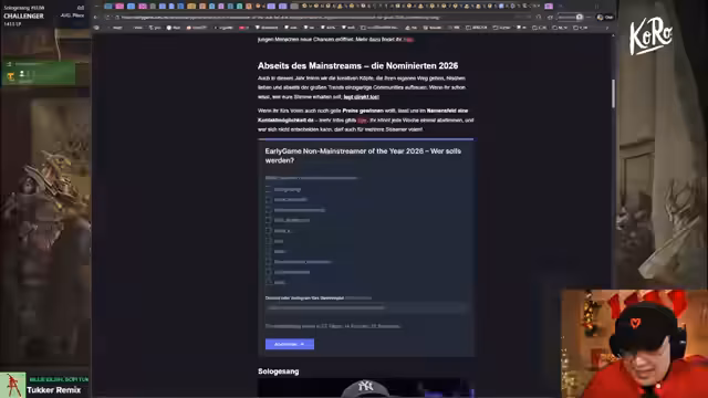 04:55:59Während des Streams wird die Partnerschaft mit dem Snack-Unternehmen Koro vorgestellt. Streamer bewirbt deren Produkte wie Mango-Streifen, Proteine und Riegel und nutzt den Stream, um einen exklusiven Rabatt-Code zu bewerben. Gleichzeitig wird die MetaTFT-App, ein externes Tool, empfohlen, das Spielern hilft, Builds zu analysieren und In-Game-Informationen zu erhalten, und betont die Vorteile einer kooperativen Beziehung für die Community.