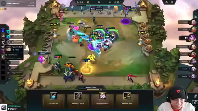 Der Streamer analysiert Akali-Comps und Item-Builds in Teamfight Tactics, gibt Tipps für den Elo-Aufstieg mit Jinx- und Starlands Battle Early-Strategien. Power-Ups, Item-Kombinationen und die Bedeutung von Poppy als Main-Tank werden diskutiert. Es werden Vorbereitungen für ein bevorstehendes Turnier getroffen.