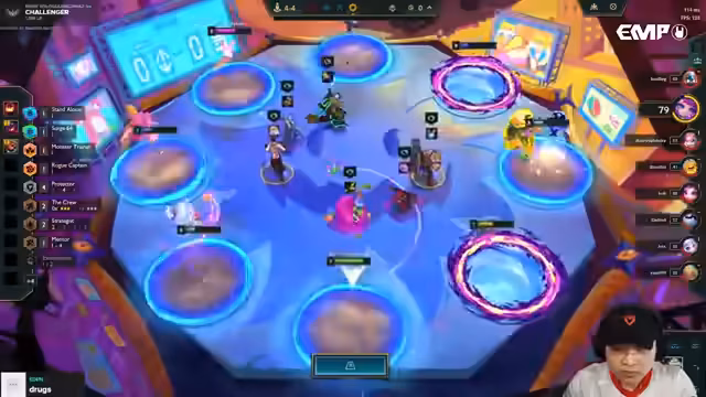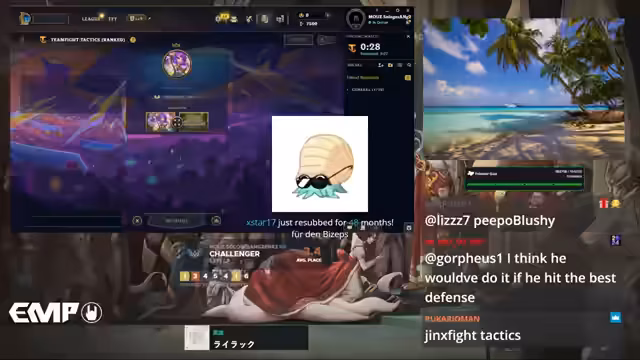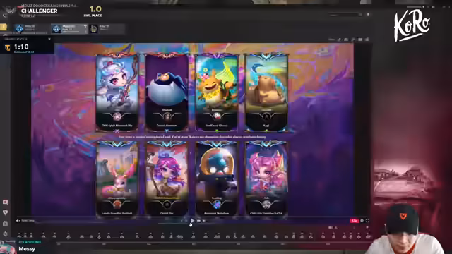 01:14:49Der Streamer startet ein Spiel und experimentiert mit einem Kog'Maw-Build. Er baut Jewel Gauntlet und Nashor's Tooth, entscheidet sich aber später für ein Troll-Build mit einem Slam Belt, um einen Protektor-Schild auf einer Einheit zu erzeugen. Während des Spiels ist er auf einem Crystal Gambit-Build aufmerksam geworden, bei dem man früh beginnt zu win streaken, um am Ende von Stage 4 hohe Stacks zu bekommen und mit 3-Item-Anvils das Spiel zu gewinnen. Dies ist eine alternative, riskantere Strategie zur Maximierung der LP.