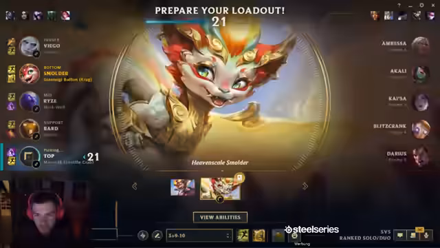 04:11:14Das Gameplay mit Smolder wird als schwierig beschrieben, insbesondere in Situationen, in denen der Gegner aggressiv auf der Botlane agiert. Der Streamer analysiert seine eigenen Fehler und die des Teams, wie verpasste Kills und unglückliche Entscheidungen. Er erkennt, dass er in manchen Spielen zu passiv agieren muss, um nicht zu sterben, was den Spielspaß mindert. Trotzdem sieht er das als gutes Training für die PrimeLeague. Die Schwierigkeit, Smolder-Stacks zu sammeln und gleichzeitig nicht zu sterben, wird hervorgehoben. Es wird auch die Stärke von Jace Jungle erneut kritisiert, der trotz AFK-Farmen im Jungle mehr CS als der Toplaner hat und seine Laning-Phase überspringen kann.