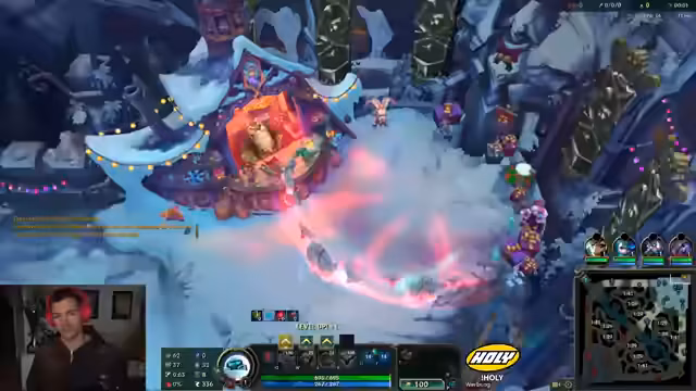 01:42:22Der Streamer probiert Smolder im nächsten Spiel aus und ist begeistert von dem Champion. Er spielt ihn erneut, da er ihm gestern schon Spaß gemacht hat. Er diskutiert über Aphelios, der auf dem Papier zwar stark ist, aber in der Realität schwer umzusetzen sei, da er in zu vielen Spielen nutzlos ist. Für AD-Carries sei es wichtig, in jedem Spiel konsistent nützlich zu sein, was Aphelios seiner Meinung nach nicht immer leisten kann. Er freut sich über den neuen 'Renteer Smolder'-Skin, der extrem gut klingt und perfekt zum Wiedereinstieg in den Champion passt. Die Winter-Map wird erneut gelobt, insbesondere die Rückkehr der alten Health-Potions, die wie Glühwein oder heiße Schokolade aussehen. Obwohl er die Map ästhetisch ansprechend findet, bemerkt er, dass sie etwas weichgezeichnet oder unscharf wirkt und für die Augen auf Dauer anstrengend sein könnte. Dennoch genießt er das Smolder-Gameplay und die Fights, in denen Soraka und Kindred gute Arbeit leisten.